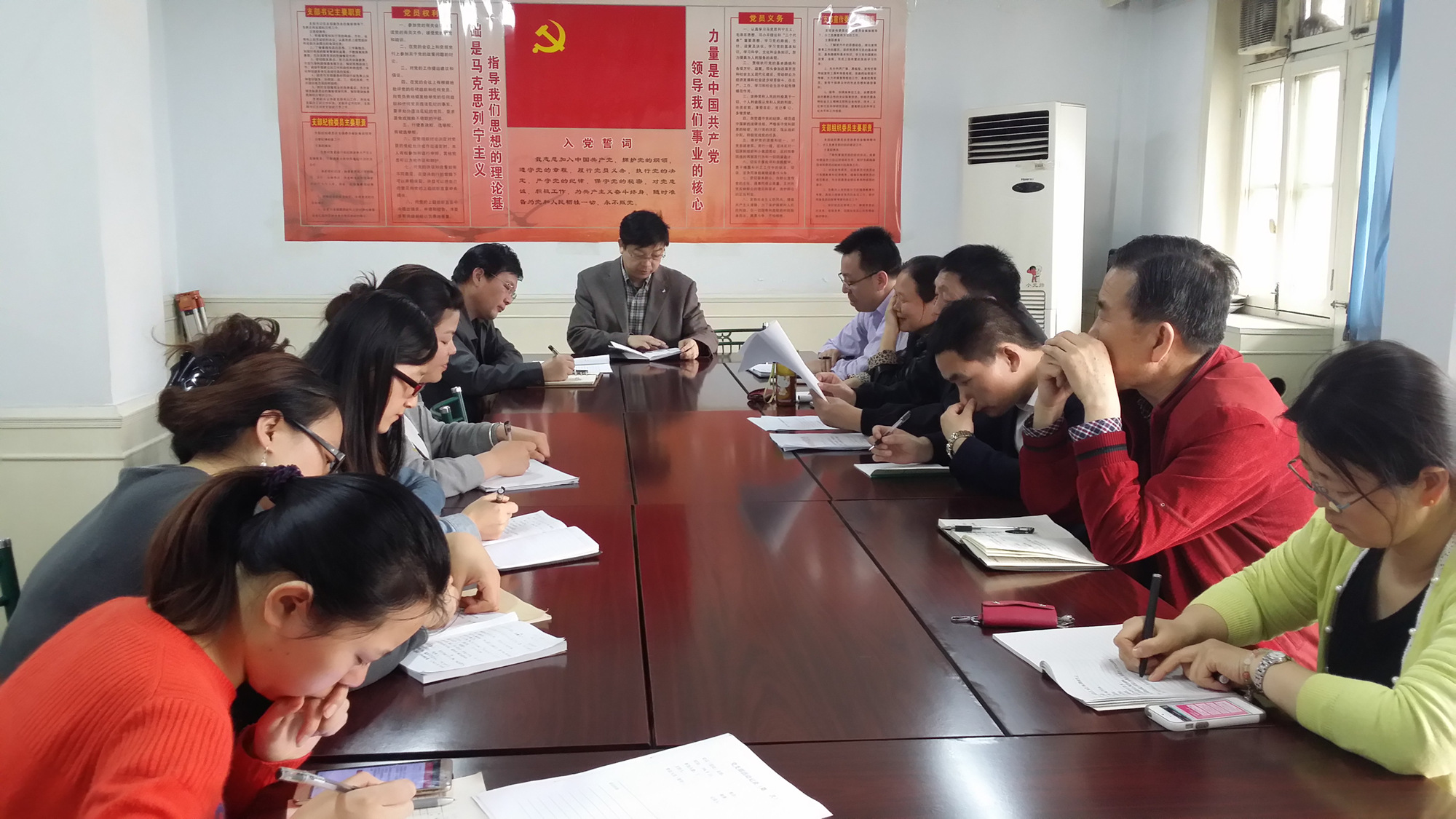 按照《中共西安市水務局委員會關于印發(fā)<市水務局“學黨章黨規(guī)、學系列講話,做合格黨員”學習教育實施方案>的通知》(市水黨發(fā)〔2016〕16號)要求,我公司于2016年4月22日下午召開“兩學一做”學習教育動員大會。會議由總支書記王長隨同志主持,公司全體黨員參加了會議。